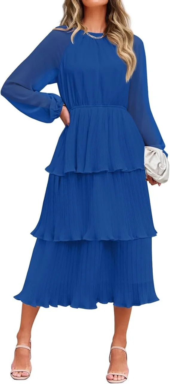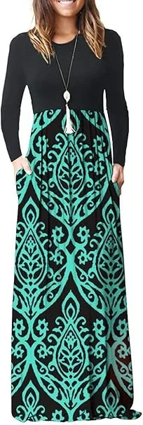 AUSELILY Women's Long Sleeve Dress Loose Plain Long Casual Maxi Dresses with Pockets 2025 New