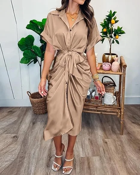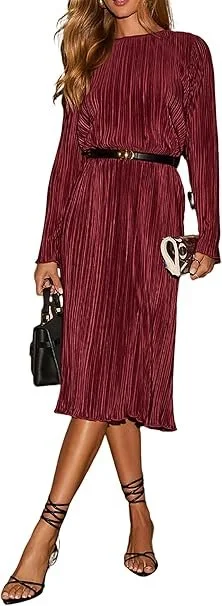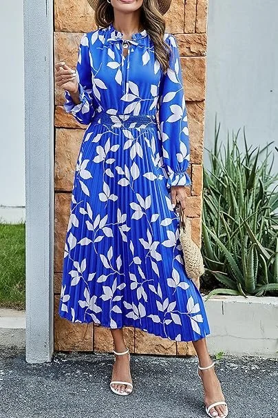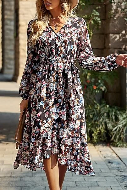 Happy Sailed Women's Long Sleeve Ruched Waist Flowy A Line High Low Midi Cocktail Party Dress